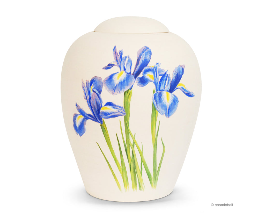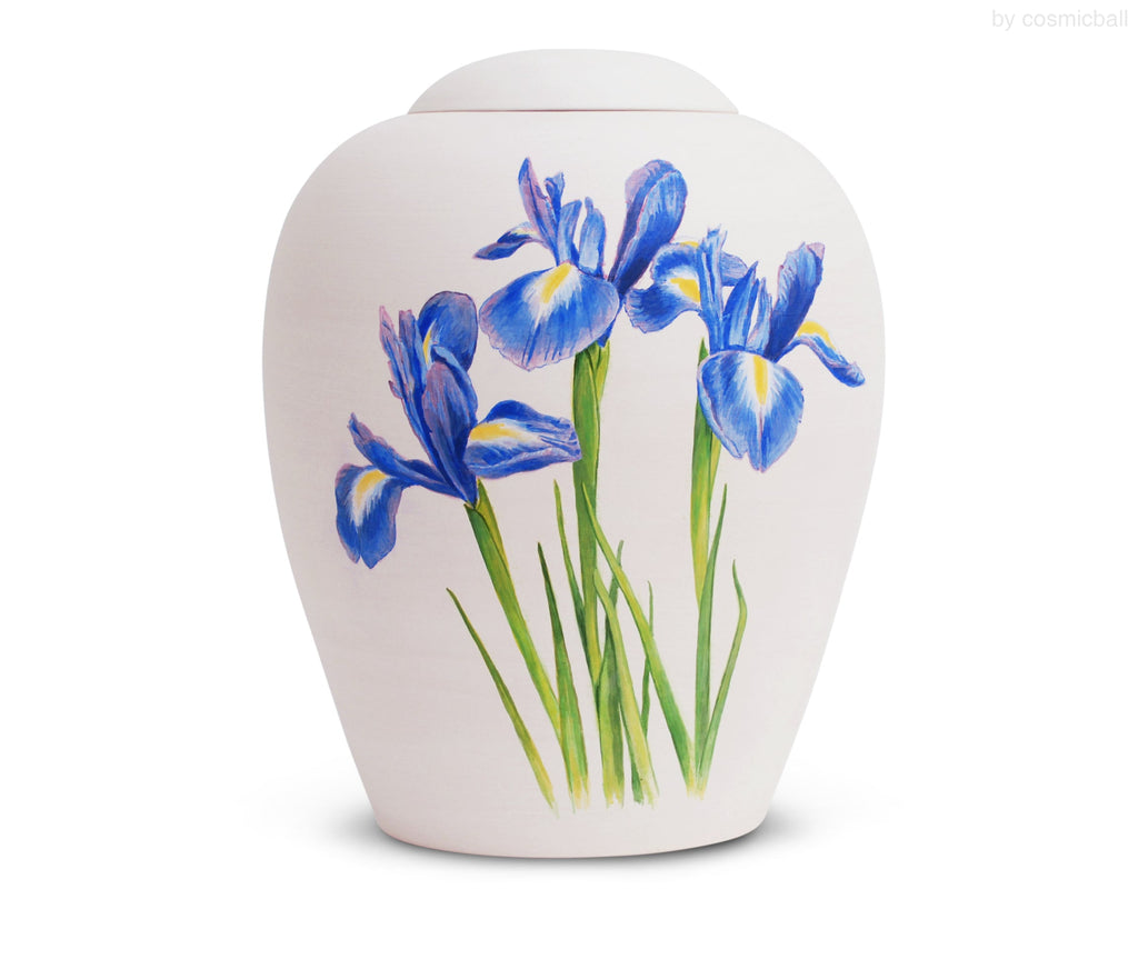 Die urne© «Lilie» ist eine schlichte, naturweisse Tonurne und ein handbemaltes Einzelstück.