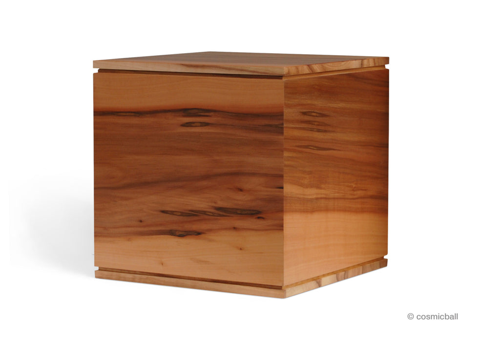 mokkyu® ist eine kubische Holzurne und ein Erinnerungsobjekt aus dickwandigem, heimischem Apfelbaumholz mit einem feinem Holzdrehverschluss. Apfelbaum ist das Holz der Liebe und der Wahrheit und vermag eine besondere Wärme auszustrahlen.