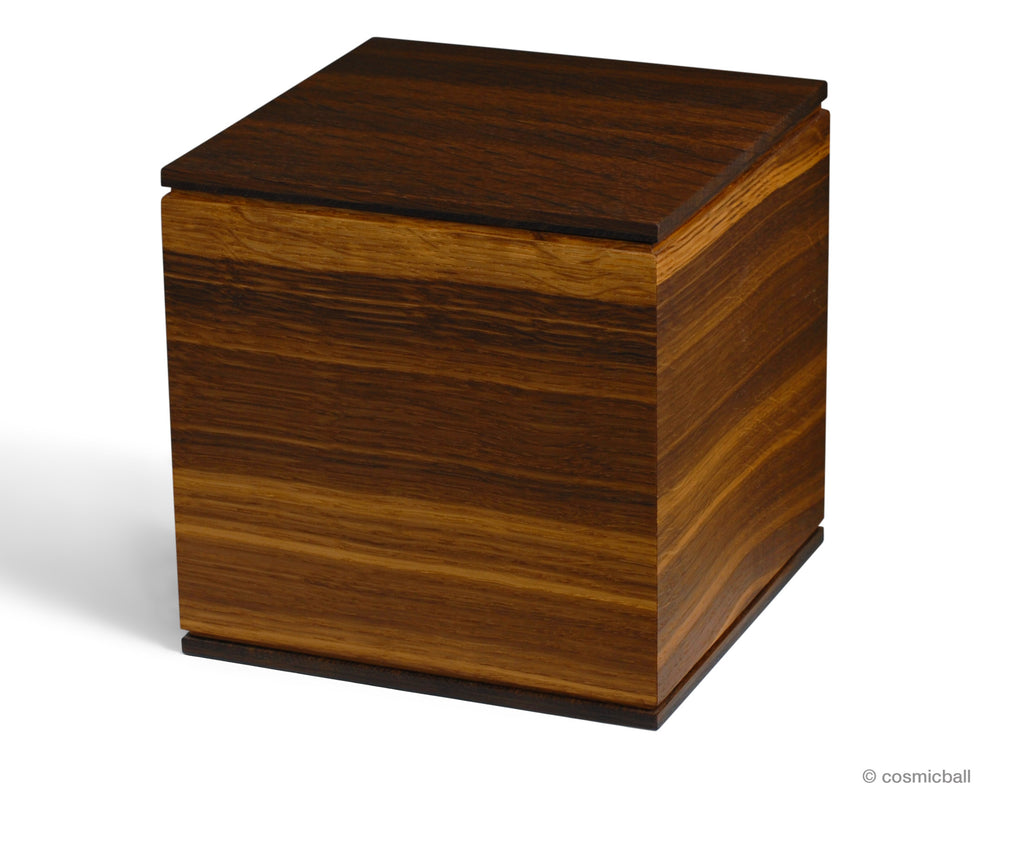 mokkyu® ist eine kubische Holzurne und ein Erinnerungsobjekt aus heimischem, massiven Eichenholz. Der Begriff mokkyu® ist eine eine japanische Wortkreation und fügt sich aus den Wörtern "Holz" und "Ewigkeit" zusammen. Die Urne mokkyu® kann als Andenken an einen lieben Menschen im Wohnbereich platziert werden und passt auch in eine herkömmliche Urnennische. Dieses Urnenmodell ist im Atelier Urne.ch erhältlich oder per Postversand innerhalb der Schweiz.