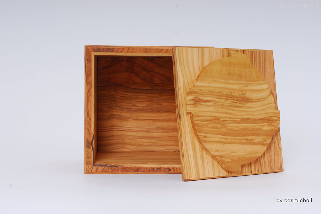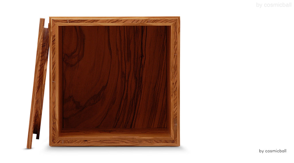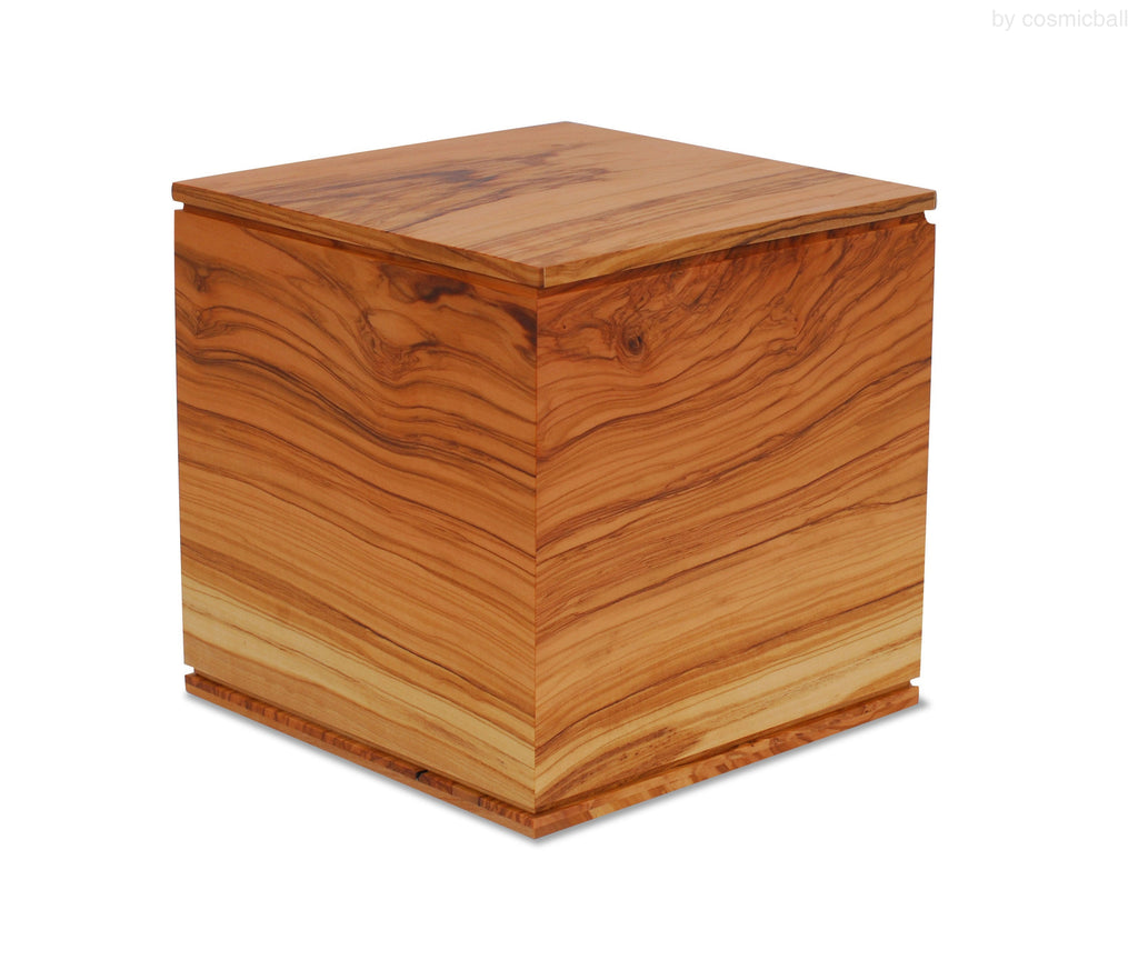 mokkyu® ist eine kubische Holzurne und ein Erinnerungsobjekt aus heimischem, massiven Olivenholz. Olivenholz ist eines der edelsten Hölzer. Das Holz wird sorgfältig ausgewählt und stammt aus dem Tessin und aus Norditalien. Der Begriff mokkyu® ist eine eine japanische Wortkreation und fügt sich aus den Wörtern "Holz" und "Ewigkeit" zusammen. Die Urne mokkyu® kann als Andenken an einen lieben Menschen im Wohnbereich platziert werden und passt auch in eine herkömmliche Urnennische.